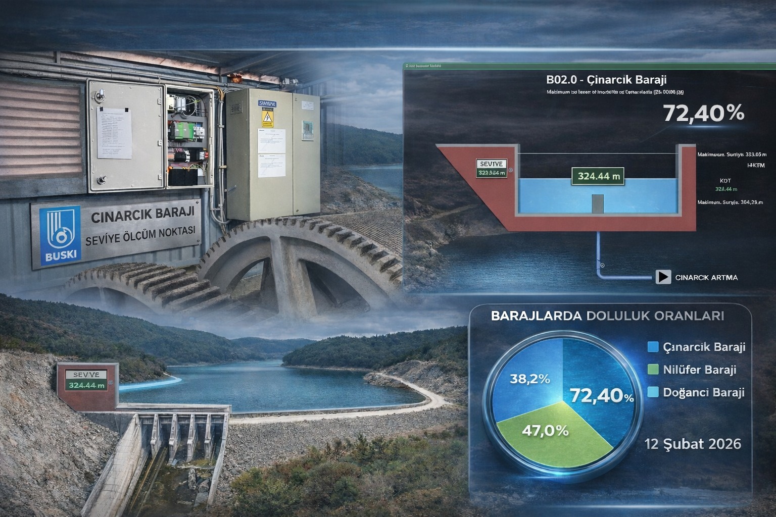 BUSKİ’ye bağlı çalışan ve bir tesise veya işletmeye ait tüm birimlerin otomatik kontrolü ve gözlenmesi sağlayan SCADA Merkezi’yle 1000’den fazla tesisi izleyip yöneten Büyükşehir Belediyesi, kentin uzun yıllar içme suyu ihtiyacını karşılayacak olan Çınarcık Barajı’nı da sisteme entegre etti. Arızalara veya sıkıntılı noktalara merkezden anında müdahale edilebilmesini sağlayan sistemle, Çınarcık Barajı’nın su seviye bilgisi ve doluluk oranı anlık olarak takip edilebiliyor.