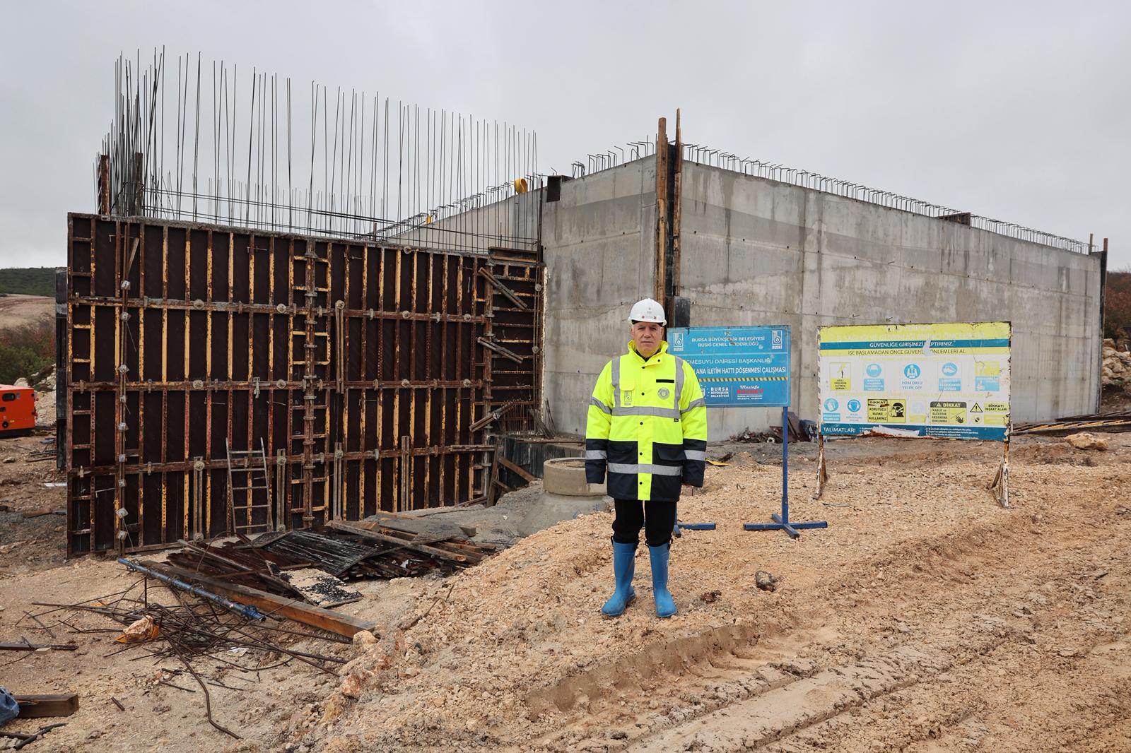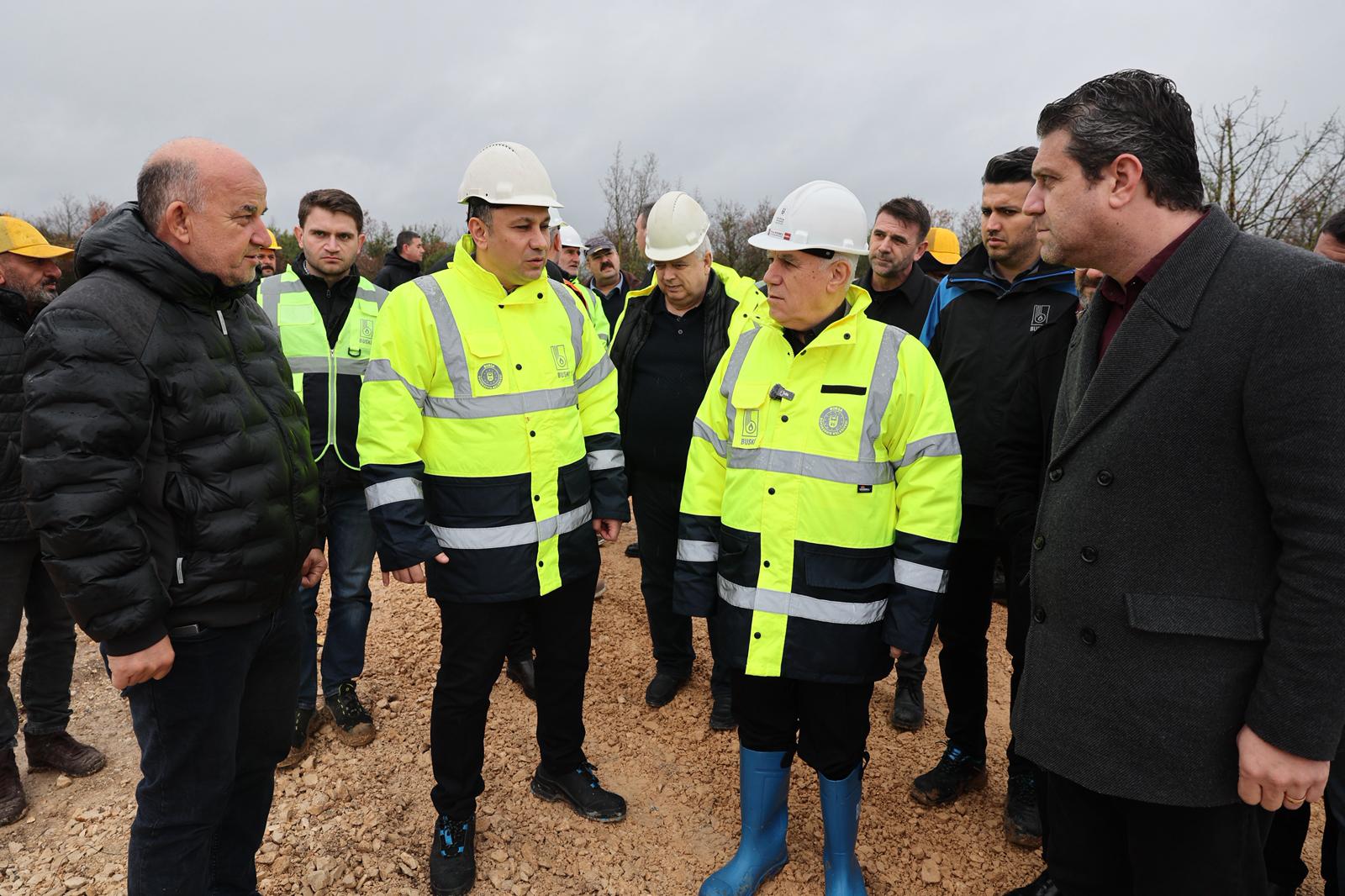 Bursa Büyükşehir Belediye Başkanı Mustafa Bozbey de inşaat alanını gezerek BUSKİ Genel Müdürü Mehmet Ercihan Subaşıoğlu ve BUSKİ yetkililerinden bilgi aldı.